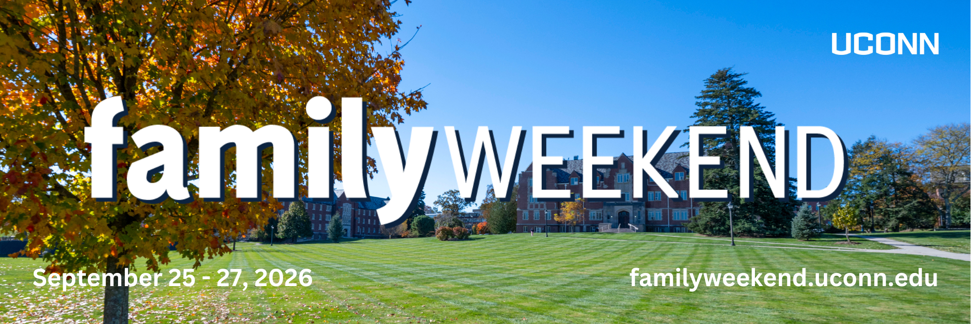 Mark your calendars! Family Weekend will be held at the UConn-Storrs campus from Friday, September 25 through Sunday, September 27, 2026. Advanced registration for Family Weekend will open in July. We recommend checking the UConn Family Weekend website regularly for updates. Families should also stay connected through the UConn Family Portal, where official communications will posted and sent by email.